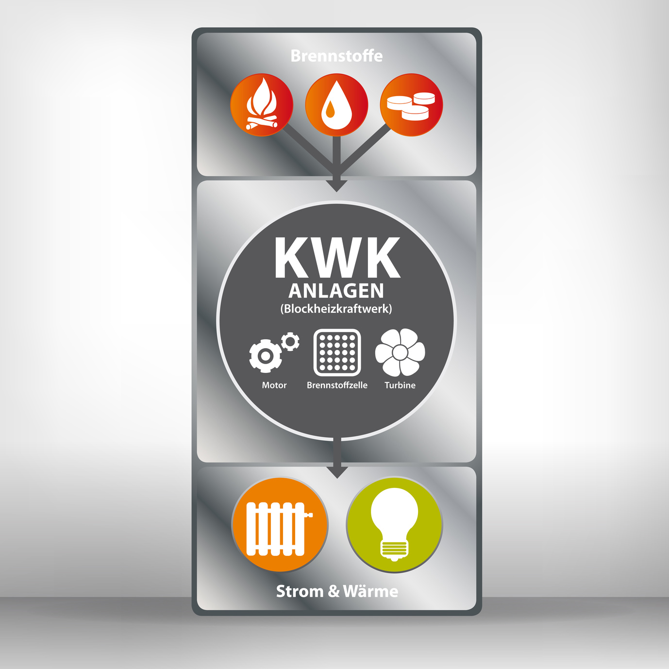 Die durch den Betrieb des Motors entstehende Wärme wird mit Hilfe eines sogenannten Wärmetauschers nutzbar gemacht. Die Wärme kann für die Heizung, Brauchwassererwärmung, Erzeugung von Prozesswärme oder mittels Absorptionswärmepumpen die Klimatisierung von Räumen genutzt werden.