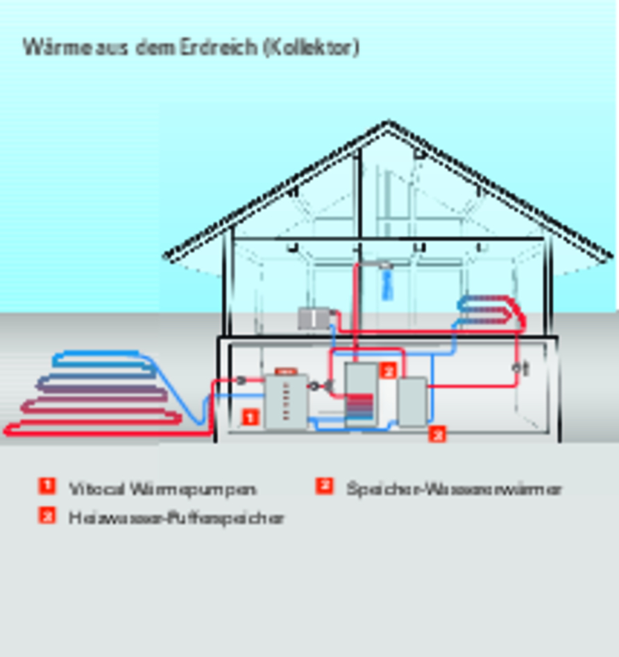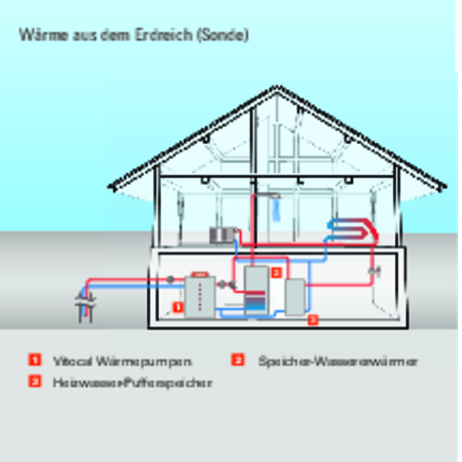 Die Erdwärmepumpe nimmt die Wärmenergie der Erde (Geothermie oder Erdwärme) mittels Erdkollektoren, die in ca. 1,20 m Tiefe flach unter der Erde verteilt werden, oder mittels Sonden, die 50 bis 250 m tief in das Erdreich gebohrt werden, auf. Deshalb sind Wärmepumpen mit Erdsonde besonders effizient.